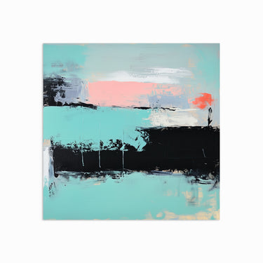 “Soft Static” captures a quiet tension between movement and stillness. Wide, horizontal swaths of seafoam green, creamy white, and soft blush pink are layered with assertive black strokes, reminiscent of flickering signals or layered soundwaves. This artwork has a beautifully minimal yet dynamic aesthetic — calm in palette, bold in composition. It evokes the feeling of tuning into a frequency just slightly offbeat — intriguing, comforting, and rich in texture. Perfect for a modern space craving soft colour with graphic edge, “Soft Static” becomes a grounding statement wherever it’s hung.