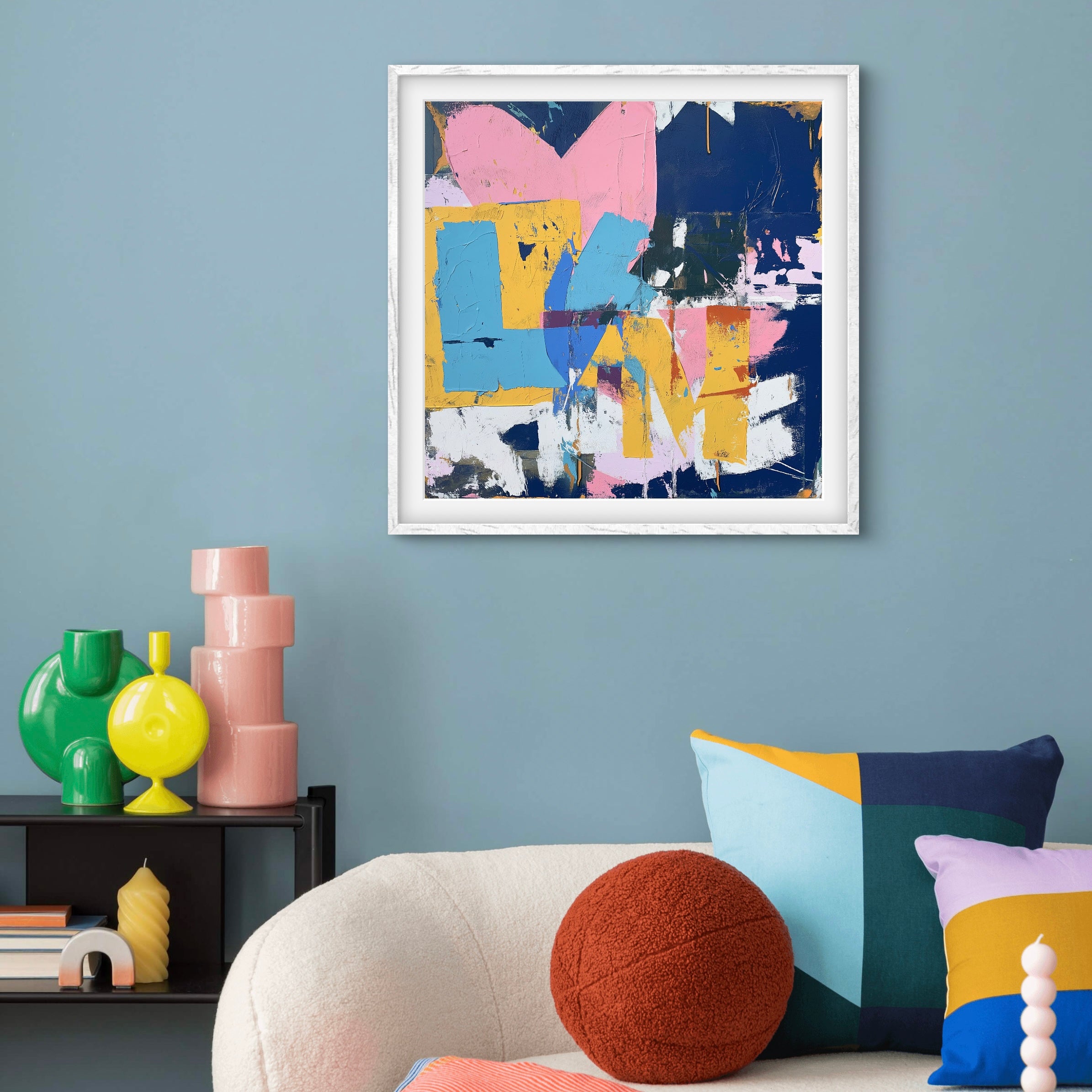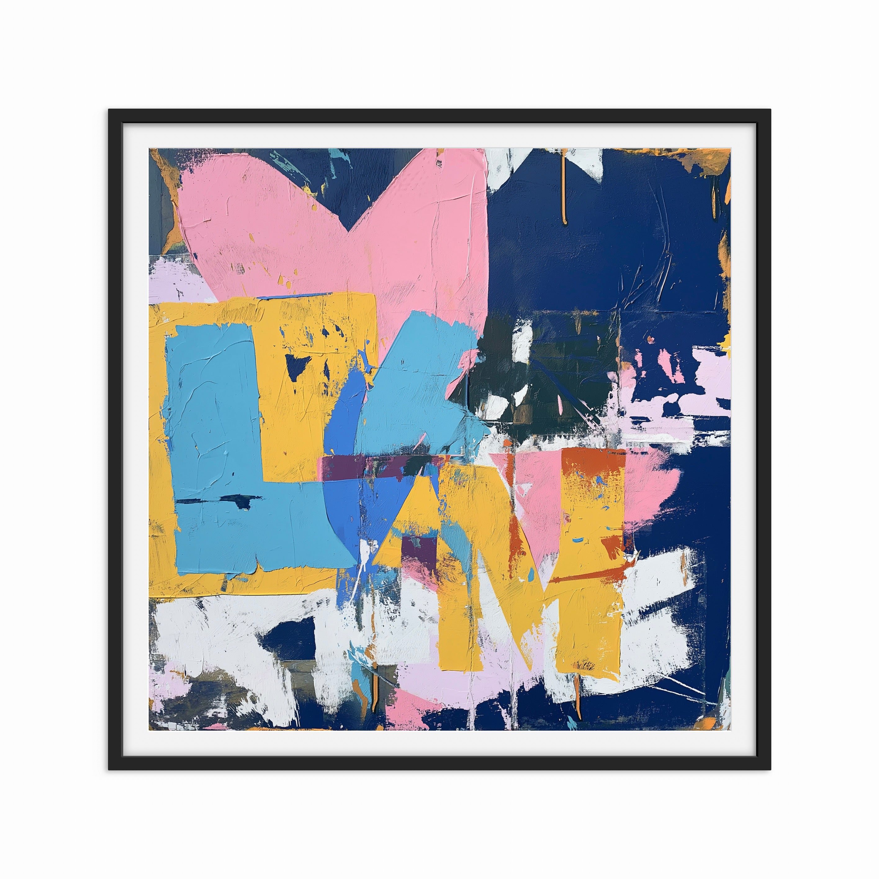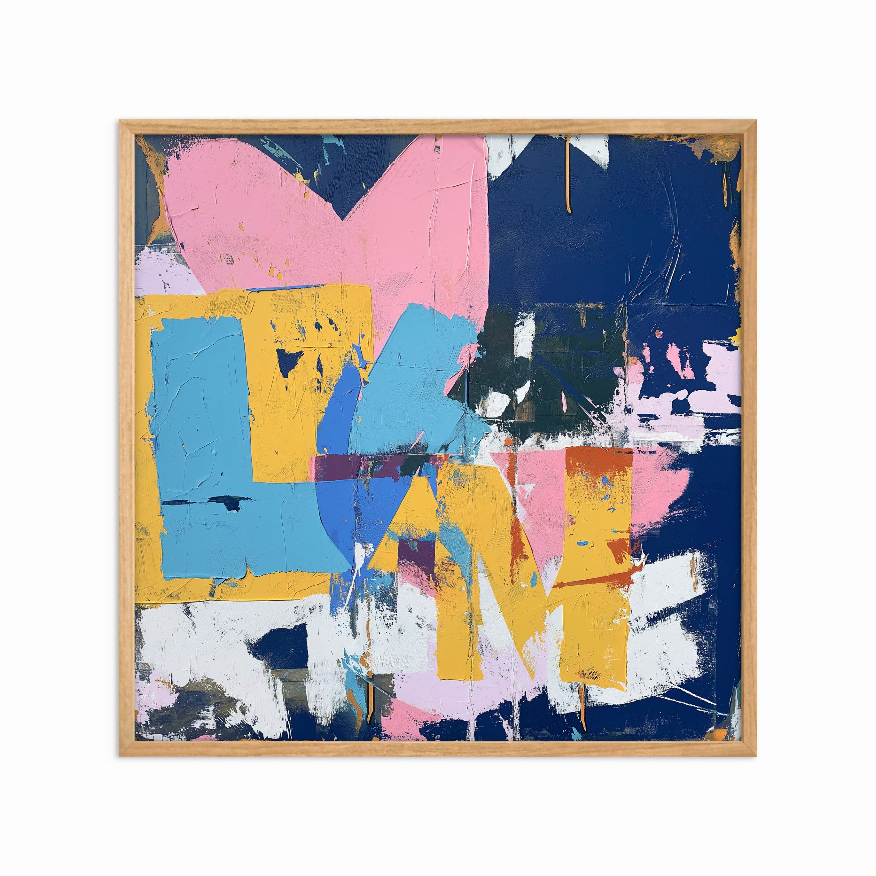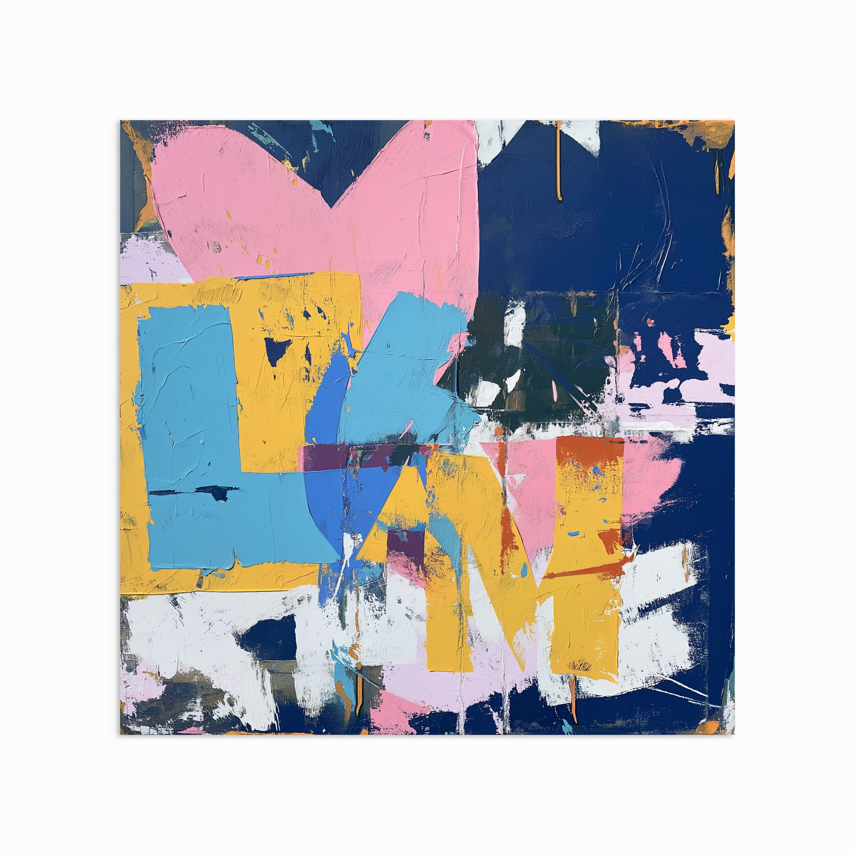"Urban Candy" is a bold and vibrant abstract print that explodes with energy and playful color. Featuring dynamic blocks of pink, navy, mustard yellow, and electric blue, this piece channels a graffiti-meets-modern-art vibe that feels raw, expressive, and full of personality. The layered textures and spontaneous brushwork give the print a gritty, street-style edge balanced by its fun, candy-colored palette. Perfect for contemporary interiors, creative spaces, or anyone looking to add a splash of color and character to their walls.