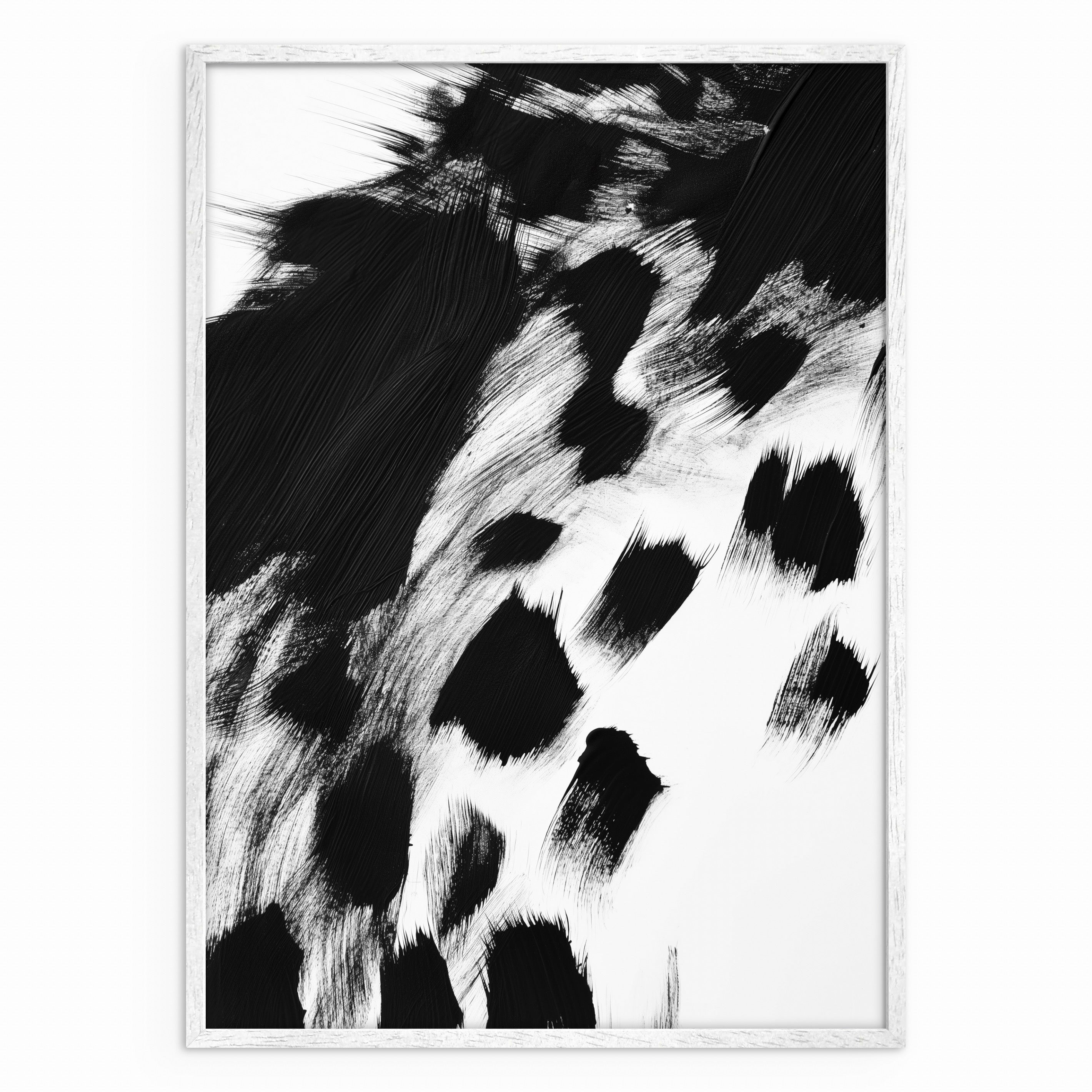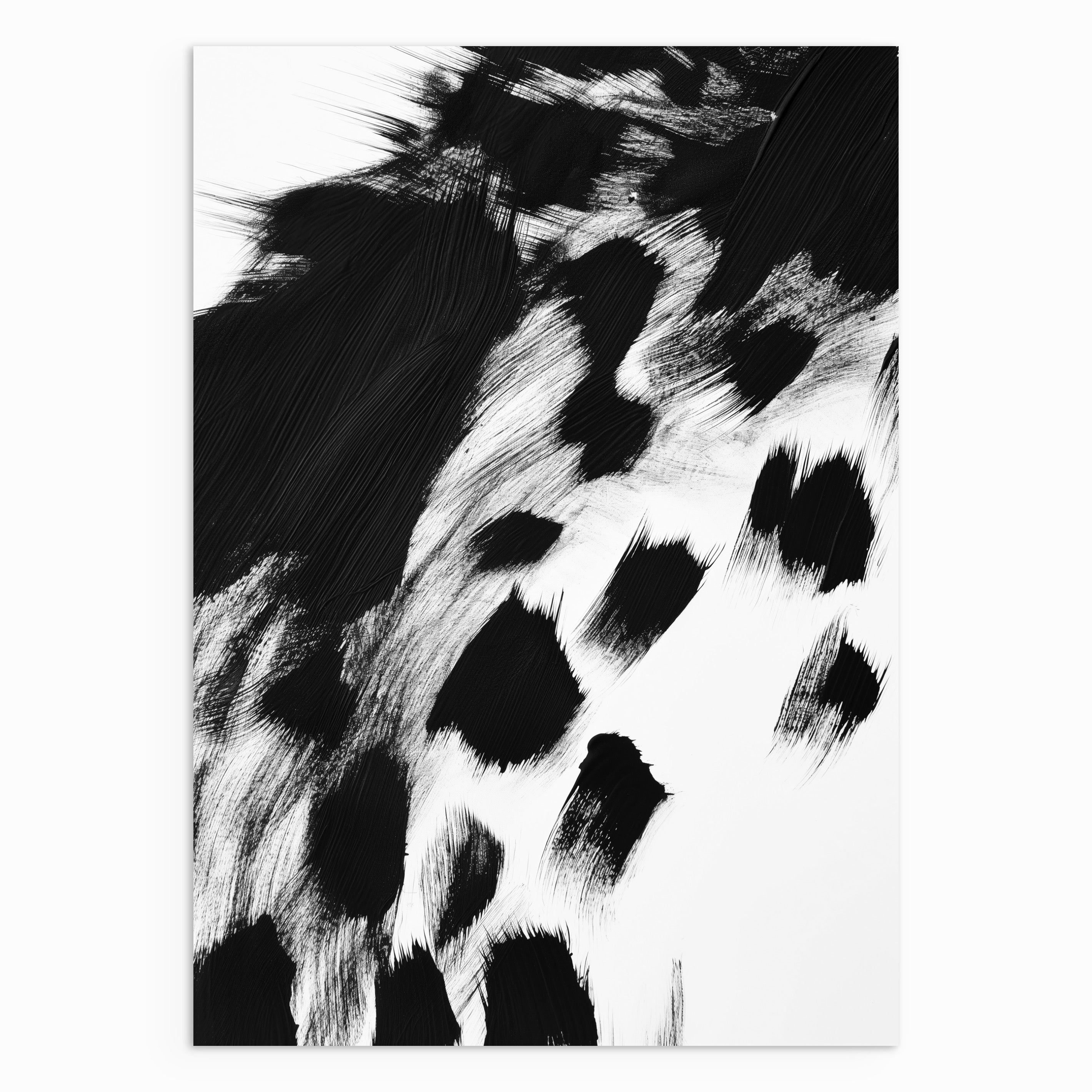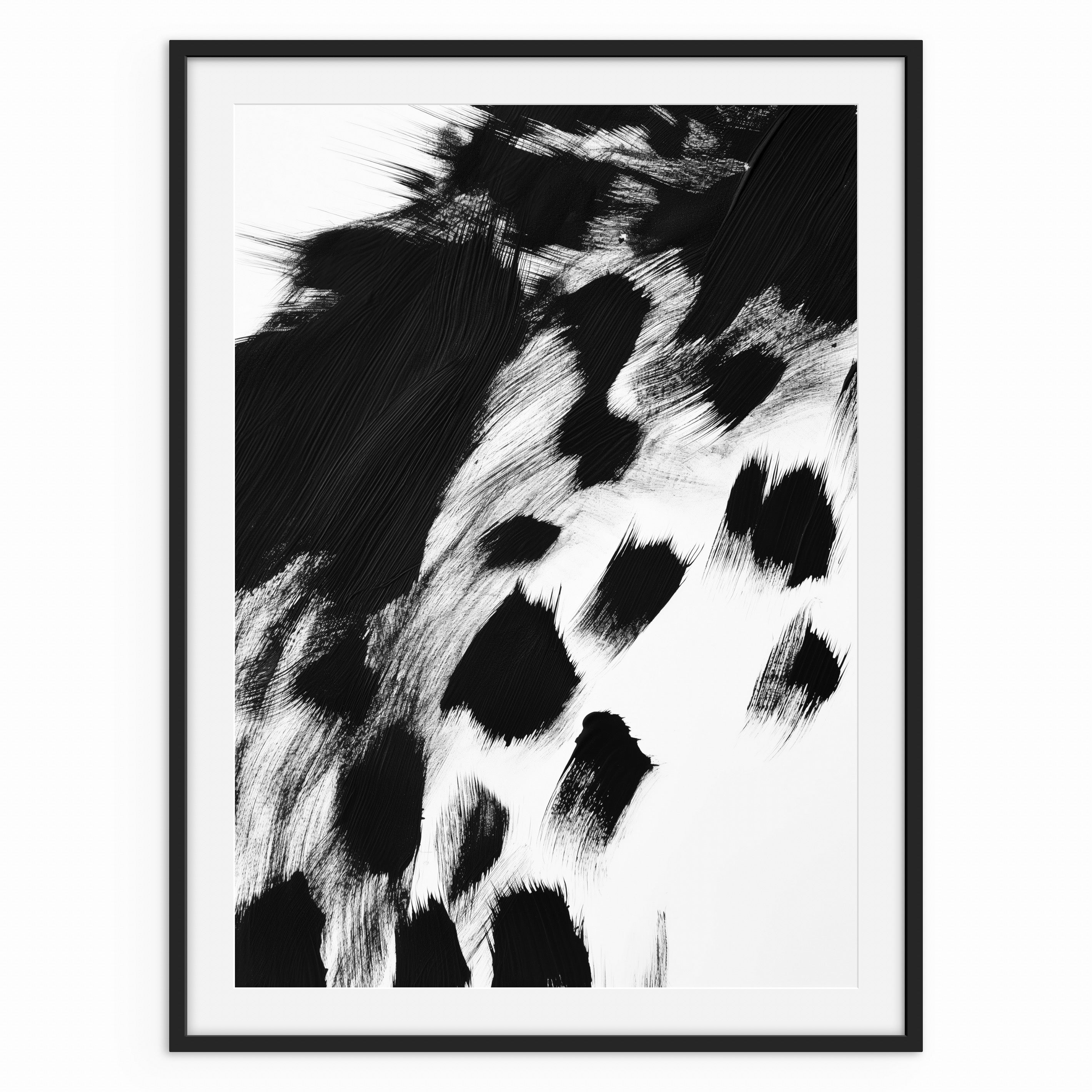 A bold abstract artwork featuring sweeping black forms and textured brushstrokes against a white background. The composition feels directional but unresolved, adding visual interest without narrative. Works well as a statement piece in contemporary spaces.