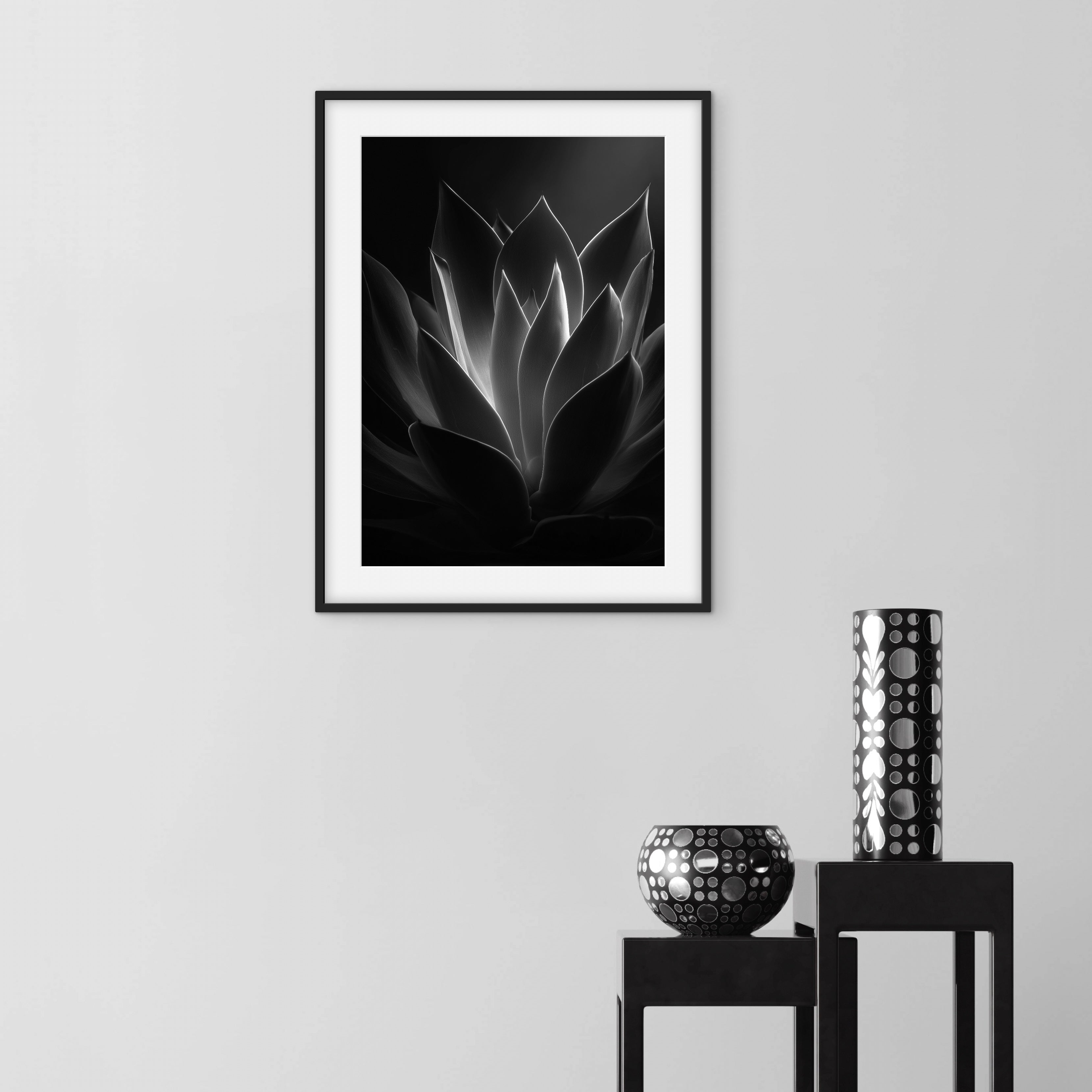 “Inner Petal” is a black and white close-up of layered floral forms emerging softly from shadow. Light gathers at the centre, highlighting delicate textures and gentle curves while the surrounding darkness creates depth and stillness. The artwork feels intimate and restrained, inviting slow looking and quiet reflection.