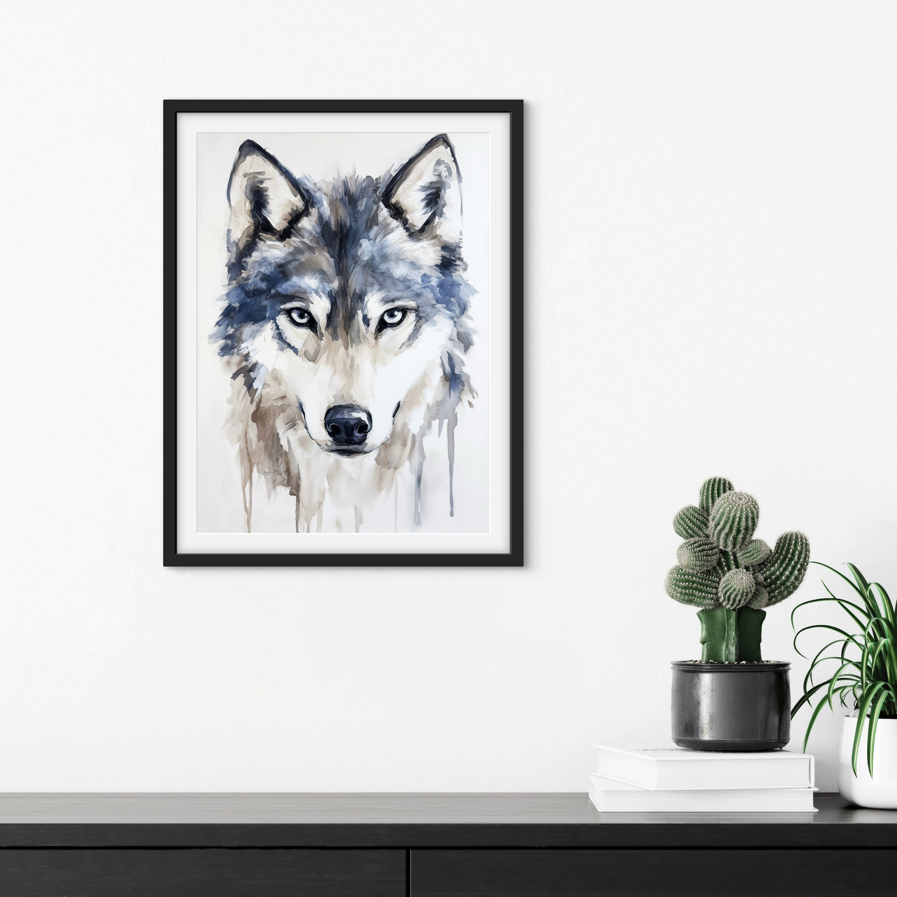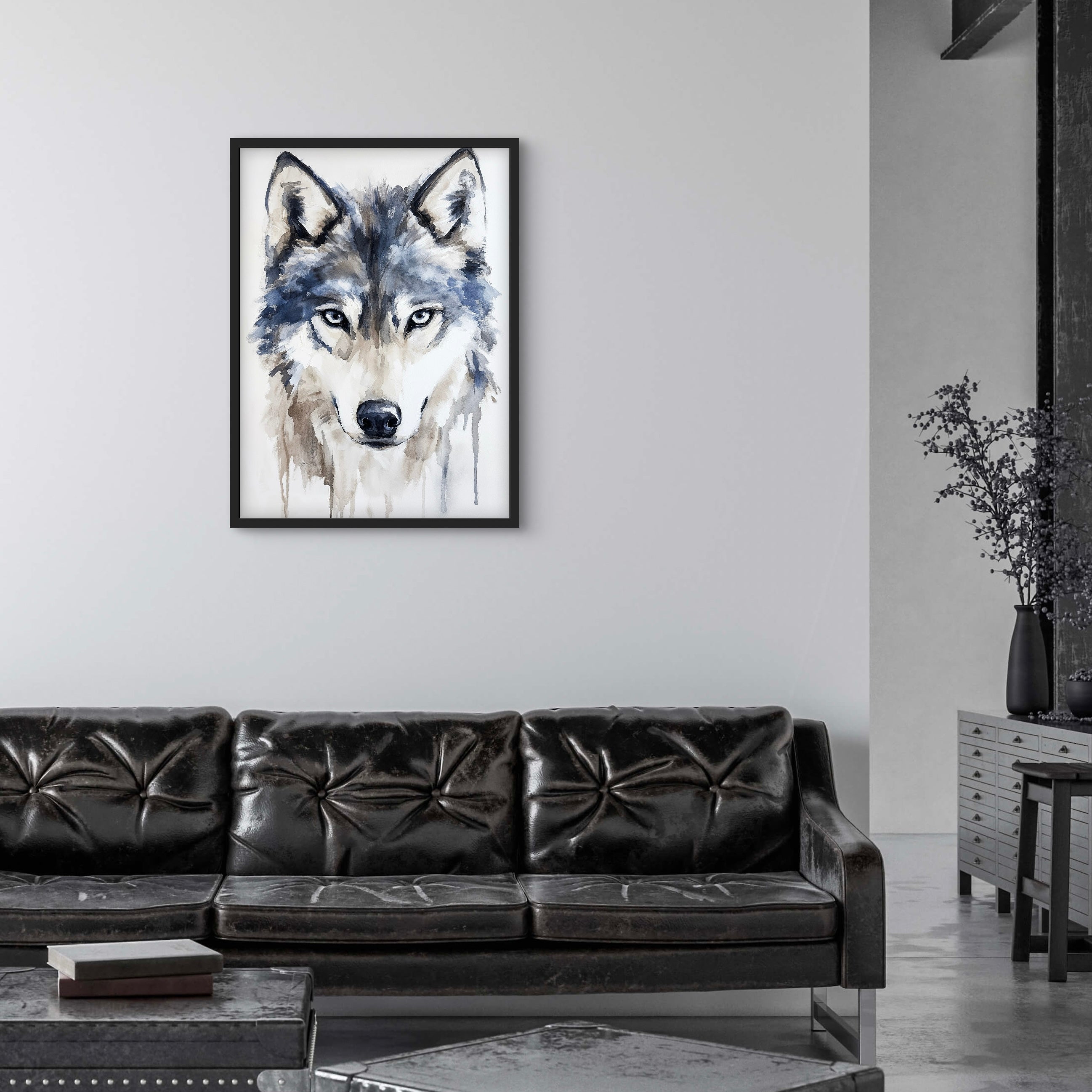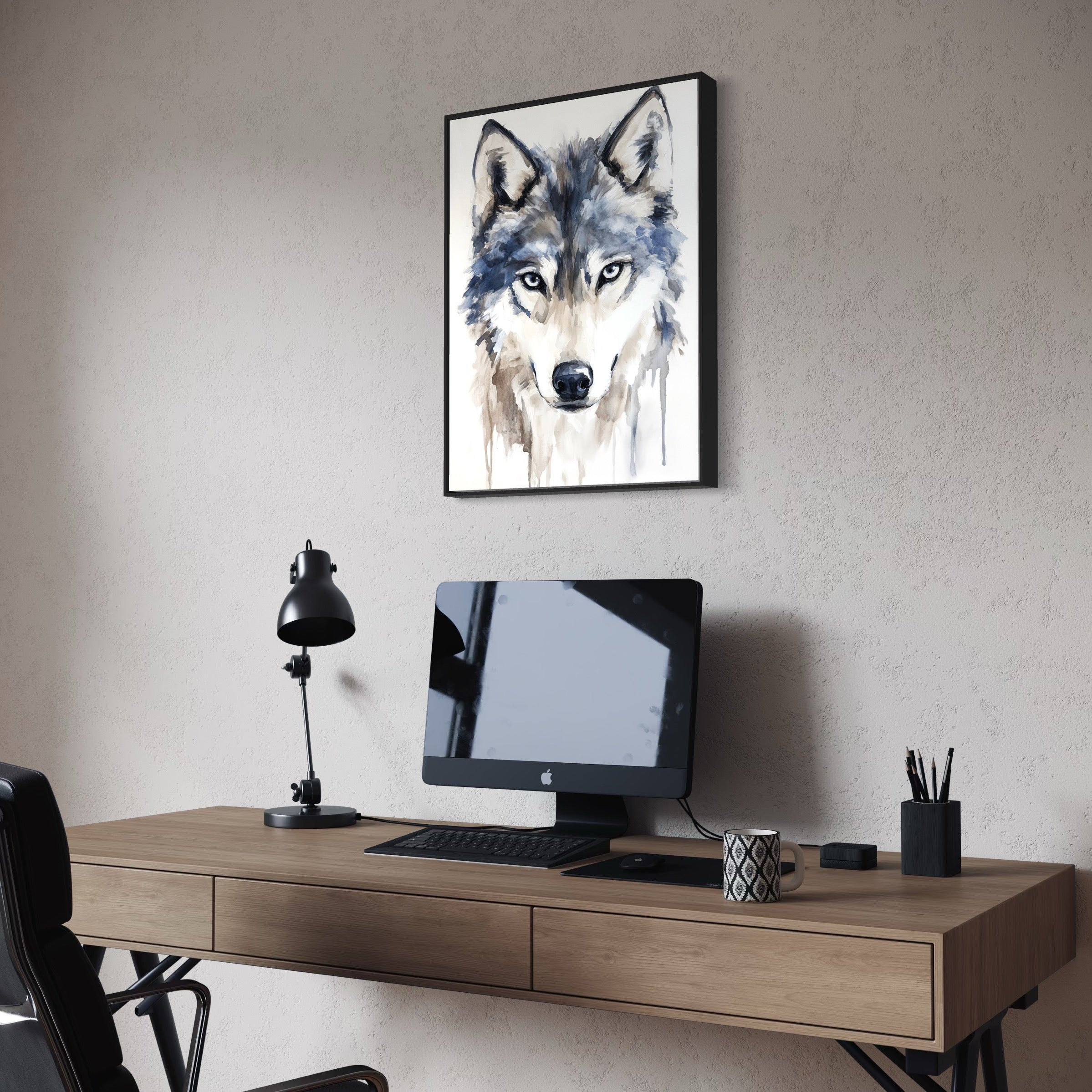 Step into the wild with "Frostbound Gaze", a captivating watercolor portrayal of a wolf captured in striking detail. This artwork blends cool arctic blues with earthy neutrals, creating a harmonious contrast that evokes strength, solitude, and serenity. The intense, soulful stare draws you in, making it the perfect centerpiece for nature-inspired interiors or minimalist spaces that crave a bold focal point. Ideal for animal lovers, modern woodland themes, or those who appreciate art with quiet power.