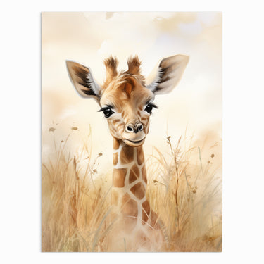 Add a touch of elegance to your space with “Graceful Giraffe.” This art print features a young giraffe with a gentle expression, captured in warm, inviting hues. Perfect for nurseries, children’s rooms, or even as a statement piece in a living room, “Graceful Giraffe” brings the beauty of the savannah into your home. Its serene presence is sure to inspire smiles and a sense of wonder.