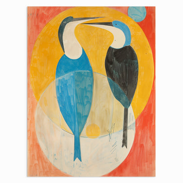 “Sunset Pair” showcases the graceful connection between two birds perched against the backdrop of a setting sun. The warm oranges and yellows evoke a sense of serenity, while the minimalistic and geometric design adds a modern touch. This artwork is perfect for bringing warmth and a peaceful ambiance into any space, ideal for nature lovers and those with a taste for contemporary art.