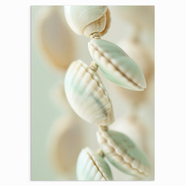 Delicate seashells strung together in a soft, neutral palette evoke a sense of beachy elegance. Perfect for coastal decor enthusiasts, this piece brings a touch of nature’s beauty to your walls.