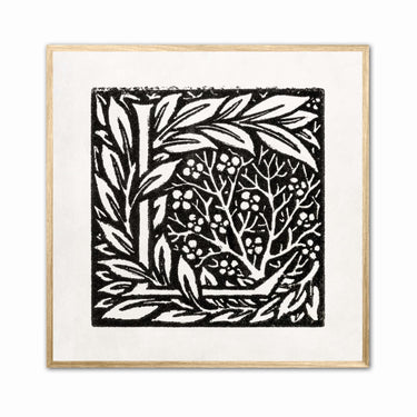 This black and white William Morris lino print for sale is a beautiful example of his intricate, nature-inspired designs. The stark contrast of the black ink on white paper gives the print a striking, graphic quality. Morris's attention to detail is evident in the intricate patterns and delicate lines that make up the design.