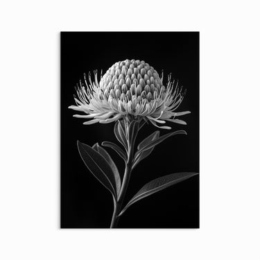 “Shadowed Pincushion” showcases the intricate structure of a South African pincushion flower in a striking monochrome palette. The delicate tendrils and rounded form of the bloom are beautifully highlighted through the play of light and shadow, bringing out the natural elegance of this unique flower. This print adds a subtle yet impactful touch of nature’s beauty to any room.