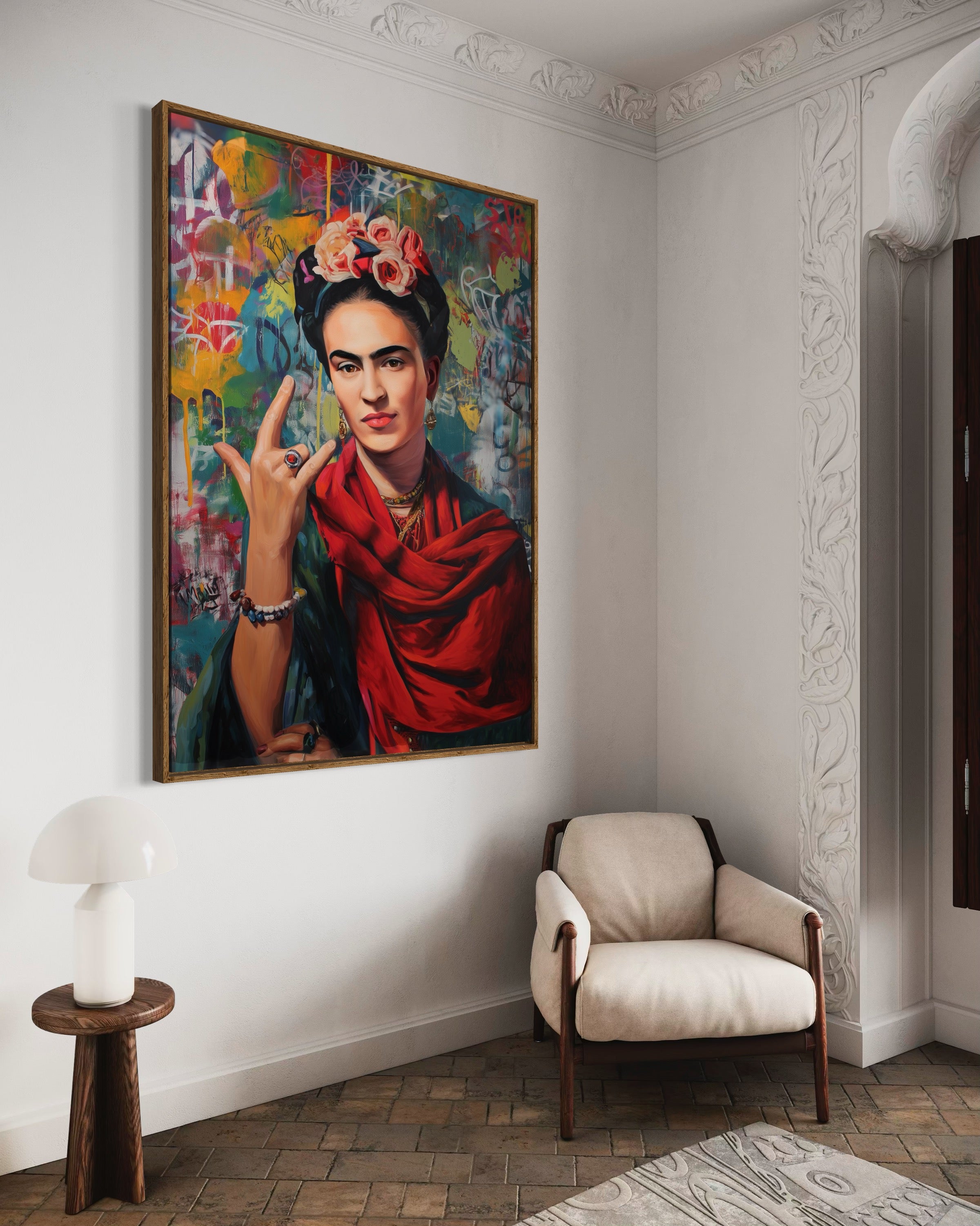 With rich, painterly textures and an urban backdrop of chaotic tags and scrawls, this piece speaks to the spirit of individuality, attitude, and cultural mashup. It’s a cheeky nod to timeless beauty reimagined for the concrete jungle.