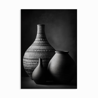 A striking monochrome print of traditional African pottery, this piece encapsulates the rich cultural heritage and craftsmanship of the African continent. The intricate patterns etched into the clay tell a story of tradition and artistry, making this print a captivating focal point in any home or office setting.