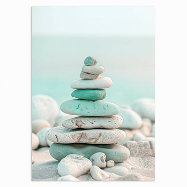Discover the tranquility of nature with “Balanced Serenity,” a beautiful portrayal of stacked stones by the shore. The gentle colours of smooth rocks in soft mint and cream create a sense of peace and balance, perfect for bringing calm into your living space. The natural textures and harmonious composition invite a soothing, meditative atmosphere.