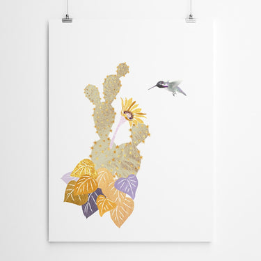 Cactus Flower And Bird Print