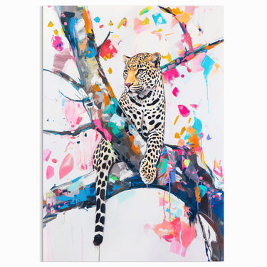 Luscious Leopard leaps from the canvas with vibrant energy, showcasing a contemporary take on the iconic leopard against a pristine white backdrop. This painting explodes with a riot of colours, each hue blending seamlessly. The leopard's sleek form is rendered in bold, dynamic strokes, evoking a sense of power and grace. Set against the purity of white, the colourful palette pops, infusing the artwork with a modern edge and a lively spirit. "Luscious Leopard" celebrates the majestic beauty of the leopard while pushing the boundaries of traditional representation, inviting viewers into a world where imagination knows no bounds.