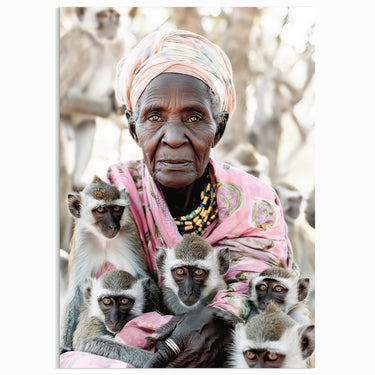 Let the grace and elegance of this group of monkeys embracing an old African woman wash over you as they envelop her with a motherly love. This unique piece will add a touch of sophistication and culture to any space. Look deep into the passion of her eyes.