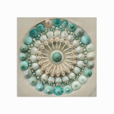 This stunning mandala is intricately designed with delicate seashells and ocean treasures, arranged in a harmonious circular pattern. The soothing teal and sandy tones bring the tranquillity of the seaside to your space, creating a calming coastal vibe. Ideal for beach lovers, this artwork is a reminder of the beauty found in nature’s details.