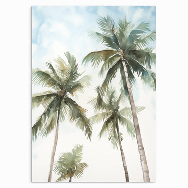 Experience the soothing rhythm of a tropical breeze with “Palms in the Breeze.” This artwork showcases the effortless beauty of palm trees swaying gently under a clear, blue sky. Perfect for bringing the essence of the tropics into your living space, this print adds a touch of natural elegance to your décor.