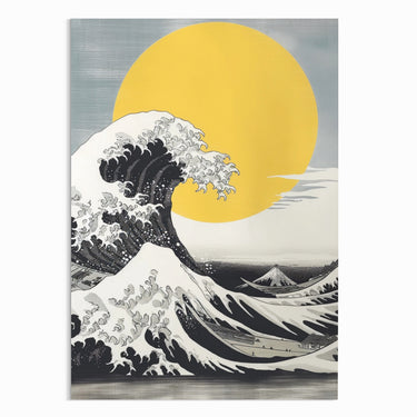 Ride the waves and bask in the sun with this unique Ukiyo-e style poster. Add some flair to your walls and bring a touch of playful art to your home. The perfect addition for any ocean lover. Hang ten with this sun and wave poster.