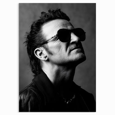 Dive into the world of U2 with this powerful portrait of Bono, the band’s iconic frontman. Captured in striking black-and-white, Bono’s intense expression and iconic sunglasses reflect his passion for music and activism. “Vertigo” is the perfect addition to any collection, celebrating the enduring legacy of one of rock’s most influential figures.